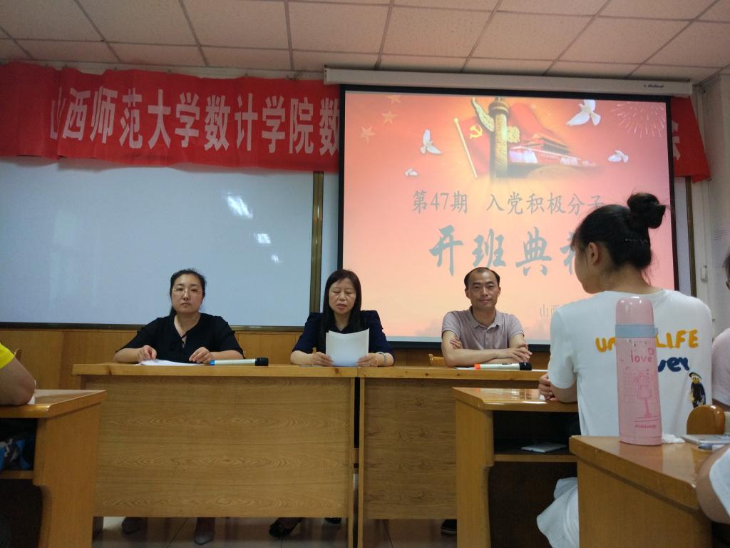 2017年5月20日晚7点,太阳成城集团在科学会堂A710报告厅举行第四十七期入党积极分子培训班开班仪式。院党委书记郝红霞、支部书记陈立记、贾静以及84名入党积极分子参加了开班仪式,开班仪式由陈立记老师主持。