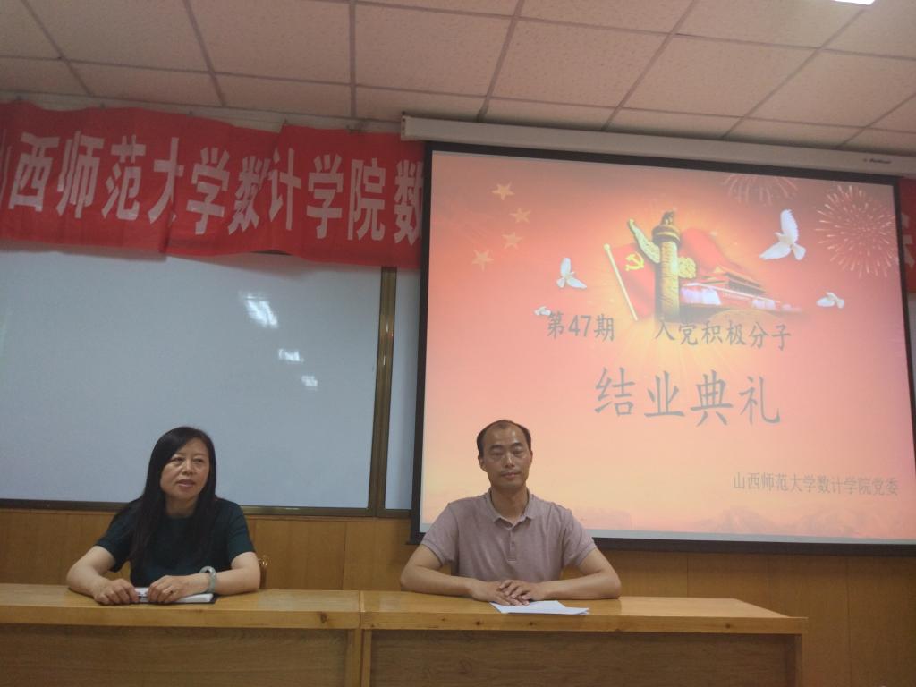 2017年5月21日晚七时,我院在科学会堂A710报告厅举办第47期入党积极分子培训班结业典礼。我院党委书记郝红霞、院团委书记陈立记以及第47期全体入党积极分子出席了此次典礼,典礼由团委书记陈立记主持。