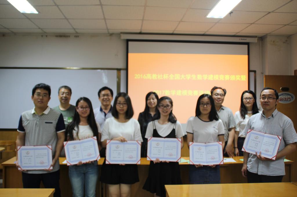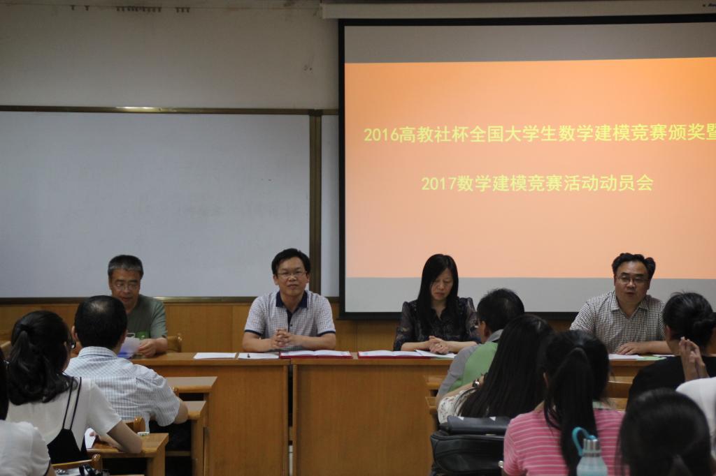 2017年6月12日晚7点半,我院在科学会堂A710报告厅召开了2016高教社杯全国大员工数学建模竞赛颁奖暨2017数学建模竞赛活动动员大会。院党委书记郝红霞,院长史建红,副院长朱红康、安立坚、王洁以及2016数学建模竞赛教练组全体员工、同学参加会议。会议由副院长朱红康主持。