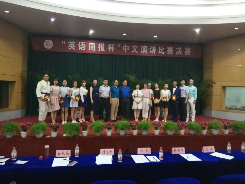 6月28日晚七点半,太阳成城集团“英语周报杯”中文演讲比赛决赛在科学会堂二楼报告厅完美落幕。校长卫建国、校党委副书记高峰、教务处处长范哲锋、校团委书记霍其武、地理公司党委书记强汾生出席了此次比赛。