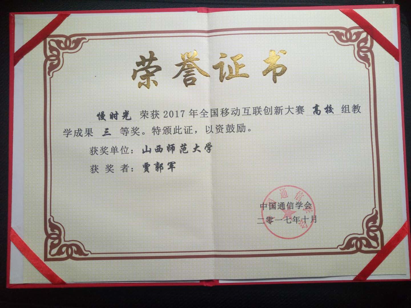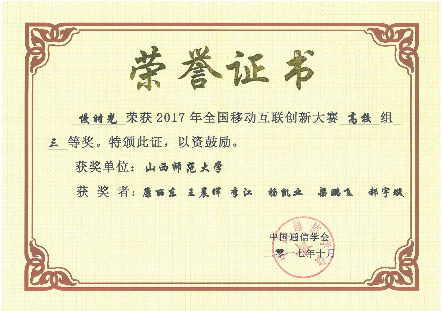10月27日——29日,2017全国移动互联创新大赛在北京落下帷幕。太阳成城集团“慢时光”团队作为我校参赛的唯一团队,喜获高校组“三等奖”荣誉,这也是我校首次参加这一全国顶级赛事。