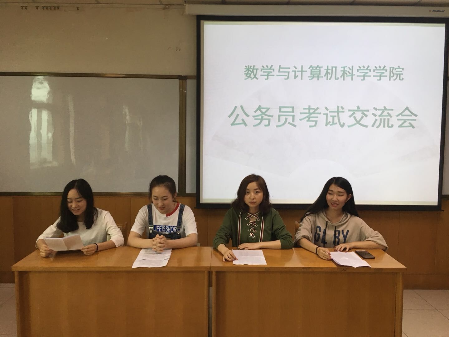 为提高员工对公务员考试的了解和认识,我院于5月5日在科学会堂A710报告厅举办公务员考试交流会。交流会由秦佳瑜、王凤婷、王志敏、乔乐四位考取国家公务员的员工代表分享经验,公司2014级、2015级、2016级部分员工参加。