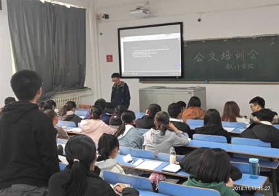为进一步规范我院学团工作,提高员工干部的文书写作能力,11月17日下午3时,我院在10105教室举办了文书写作培训会,团委员工会全体成员参加本次会议。