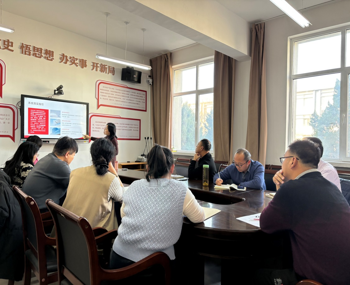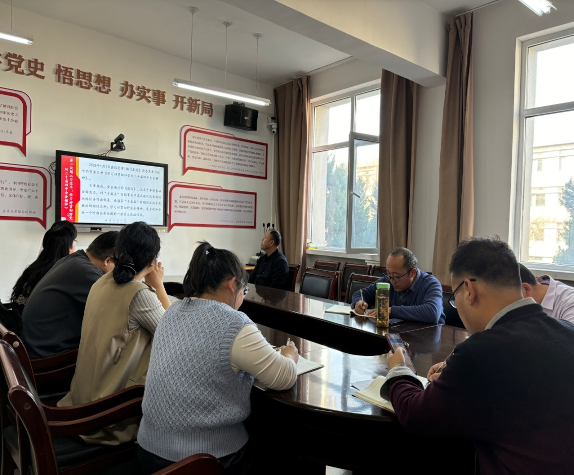 马克思主义公司黄雪丽教授以《续写中国奇迹新篇章,开创中国式现代化新局面》为题宣讲了党的二十届四中全会精神,院党委书记孙学虎领学了“第一议题”:习近平重要文章《学习好贯彻好党的二十届四中全会精神》、习近平对未成年人思想道德建设作出重要指示、习近平在全国政协新年茶话会上的讲话精神、国家主席习近平发表二〇二六年新年贺词、习近平考察山西重要讲话重要指示精神、《习近平谈治国理政》第五卷之《因地制宜发展新质生产力,实现高质量发展》、违反中央八项规定精神典型案例--(2025年“以案说纪”警示教育第4期)等内容。