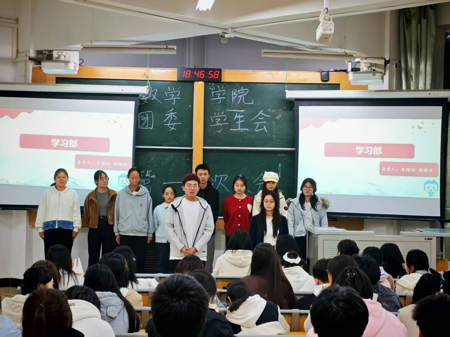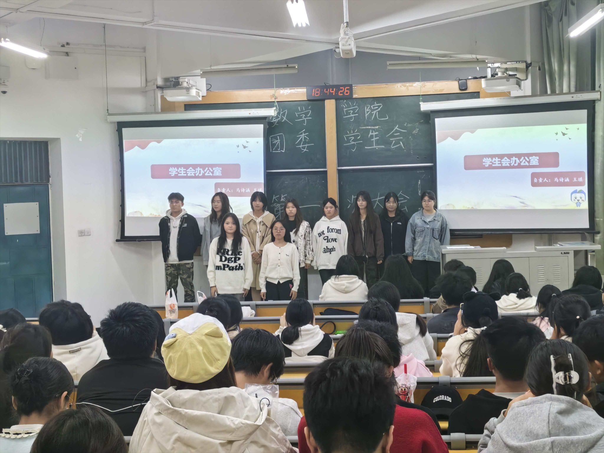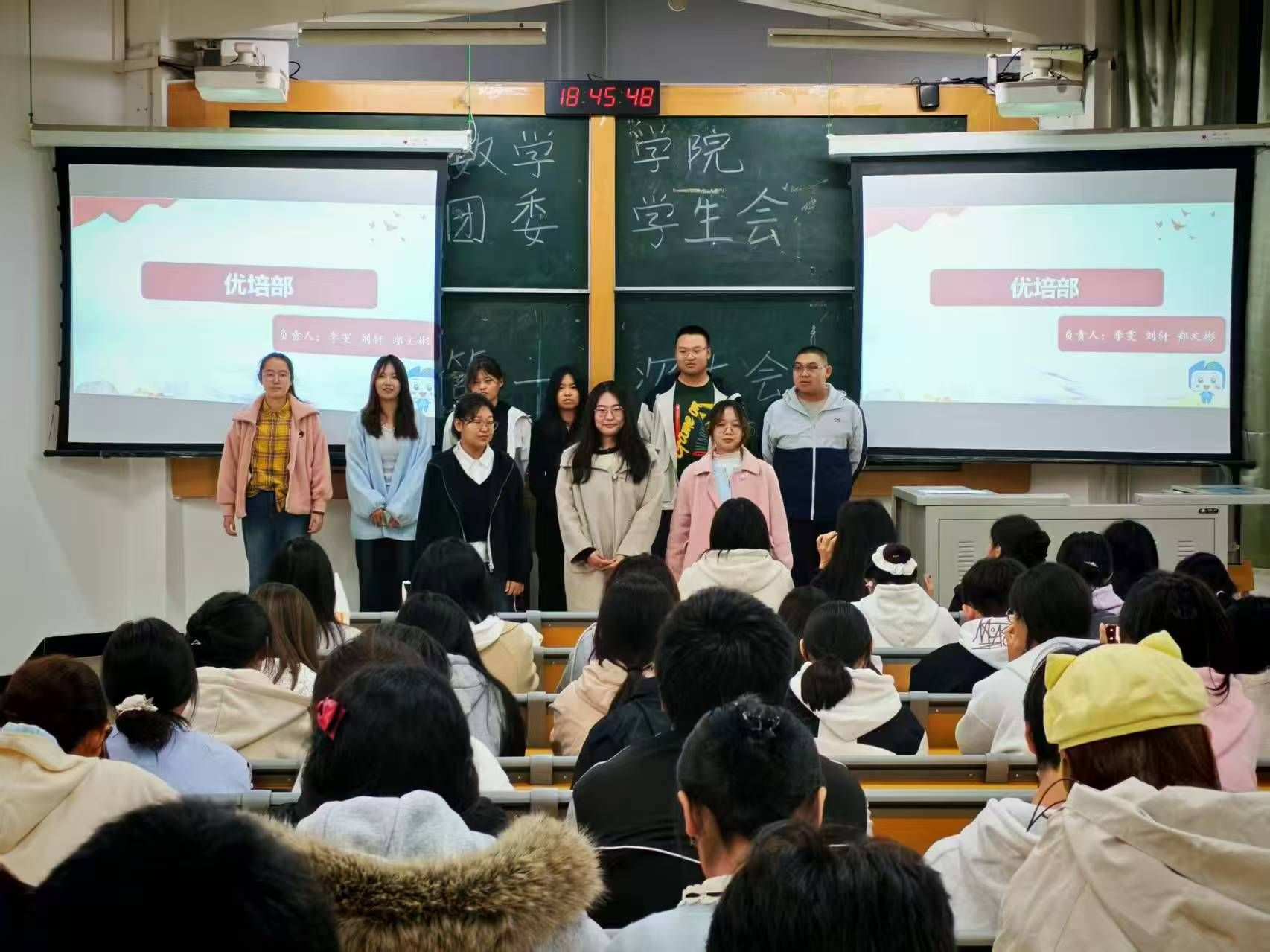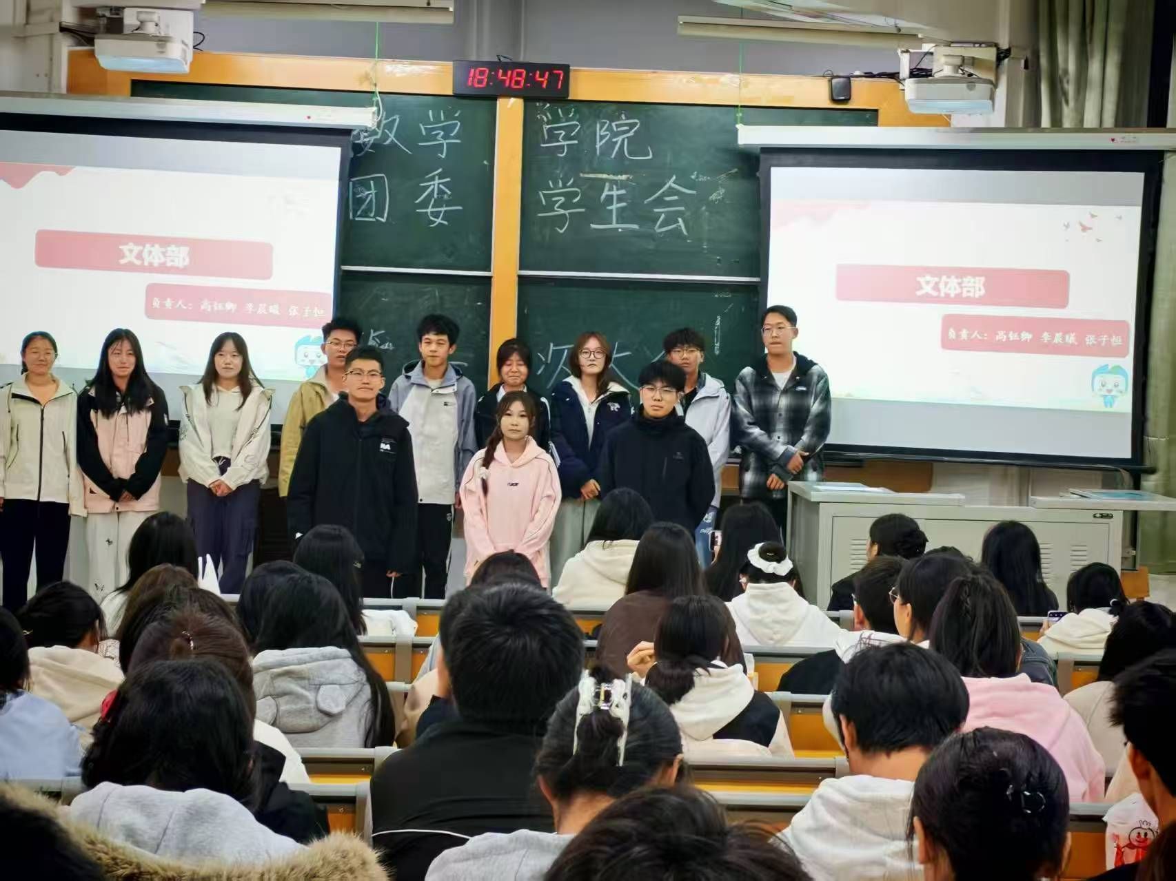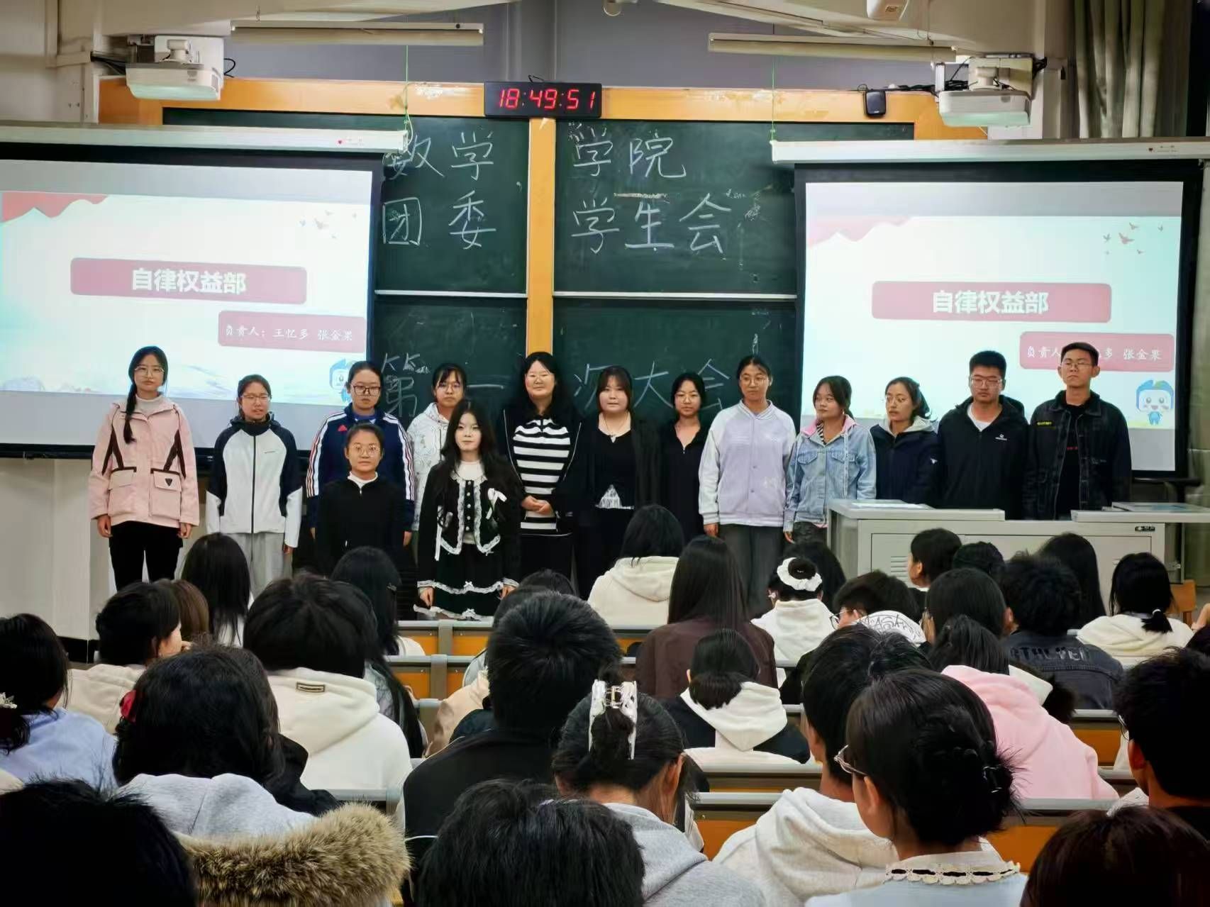 大会伊始,执行主席王子璇欢迎新晋成员、展示过往成果、勉励全体成员积极投入后续工作。之后的风采展示环节,各部门负责人与志愿者、各社团成员依次登台,介绍了自身职责与团队的核心职能,并充分展现了各团队的责任担当。随后,王子璇带领全体参会人员学习数学公司团委员工会规章制度,并详细向大家介绍了学分预警与学士学位授予的相关规定。