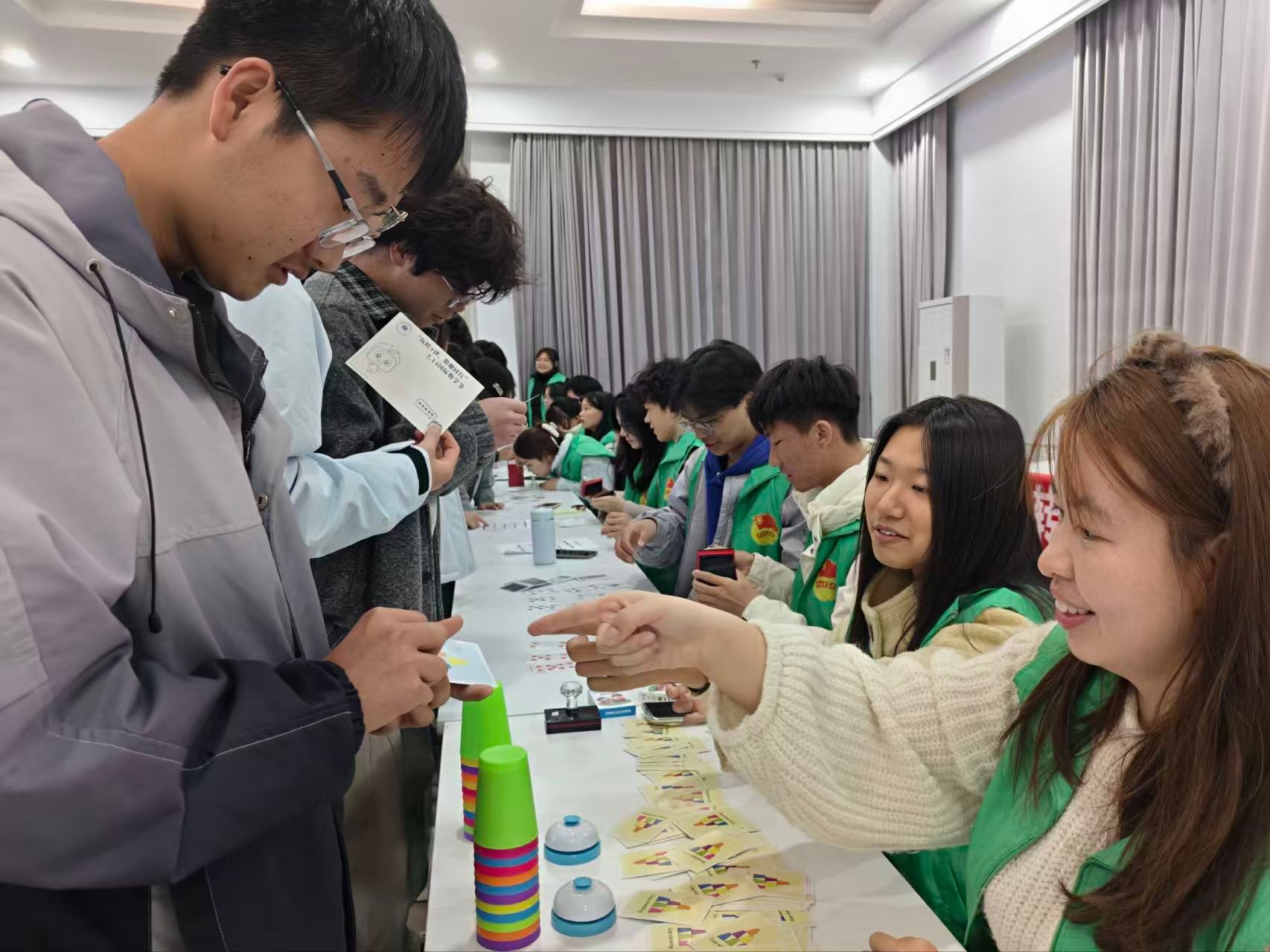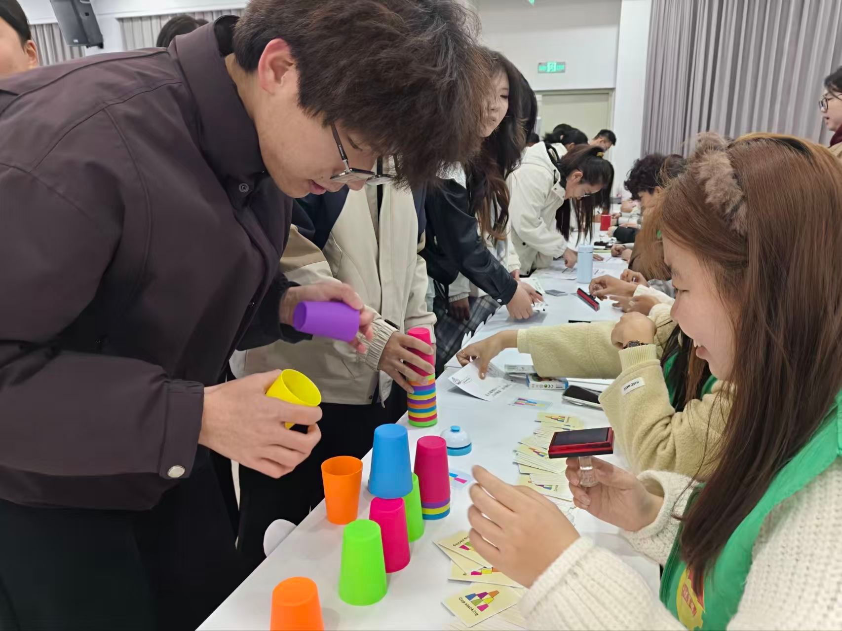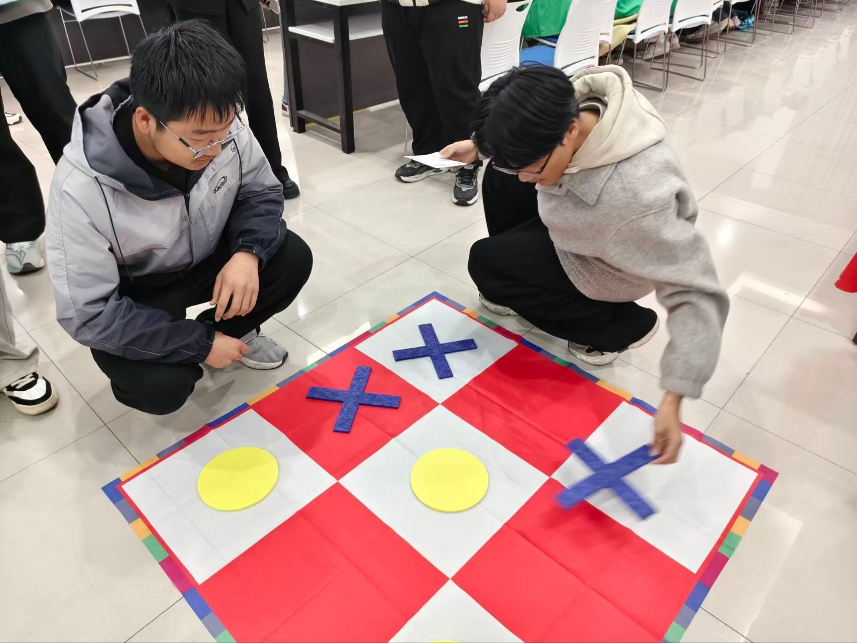 活动精心设置七大趣味互动板块,将数学知识融入游戏挑战。在“极速三子棋”与“NIM游戏”中,概率策略与临场反应交织,点燃了同学们对统计学的求知热情;“一笔画挑战”与“红黄蓝迷宫”以逻辑推演为钥,开启图形思维的奇妙之旅;“过目不忘翻翻乐”考验记忆与规律归纳,“双人对战叠叠杯”比拼手眼协调,“汉诺塔”则引导大家在最优解探索中体会递归思想。