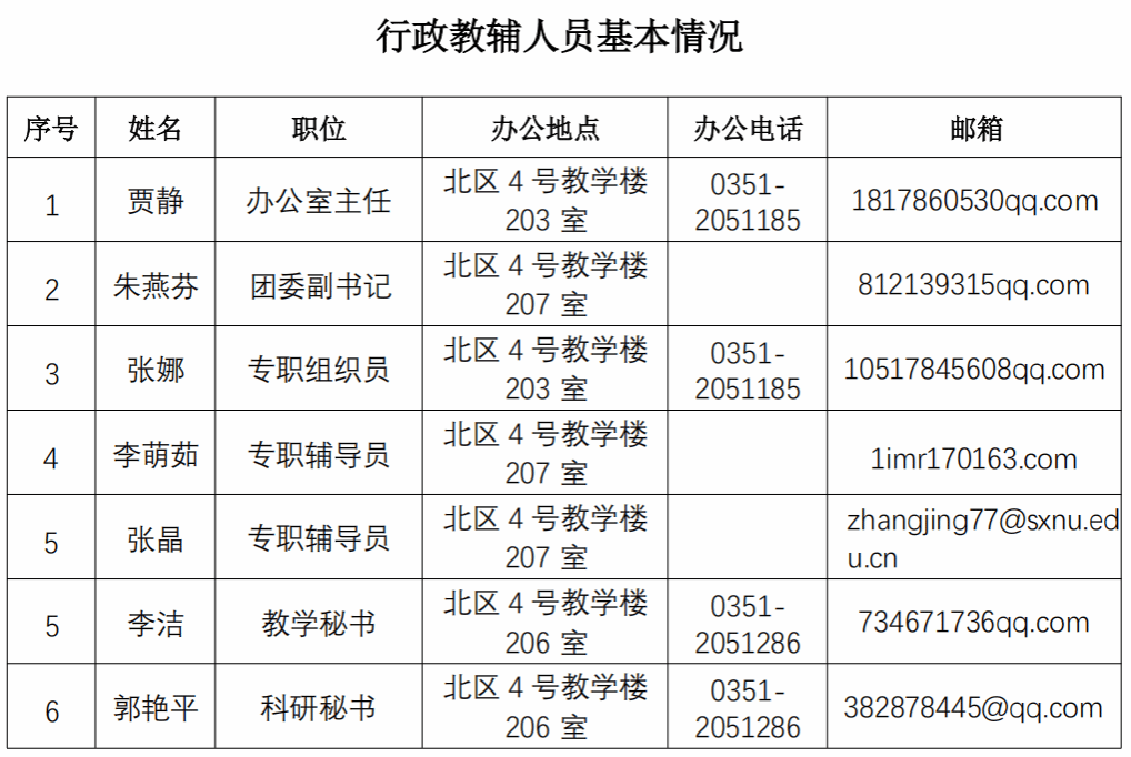 行政教辅人员基本情况